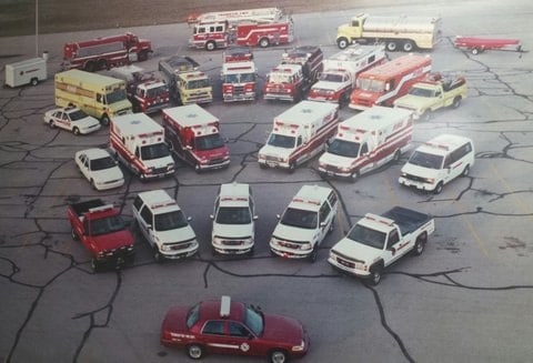 - All of the FTFD vehicles, representing the department’s four Franklin Township fire stations. This photo was taken from the roof of Franklin Central High School.