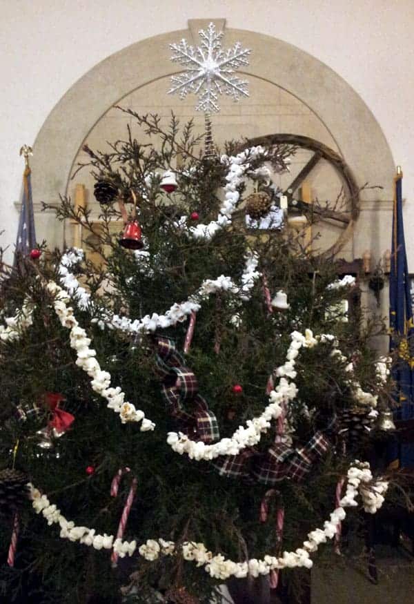 Our traditionally-decorated tree featured popcorn chains, ribbons, antique bells and berries.