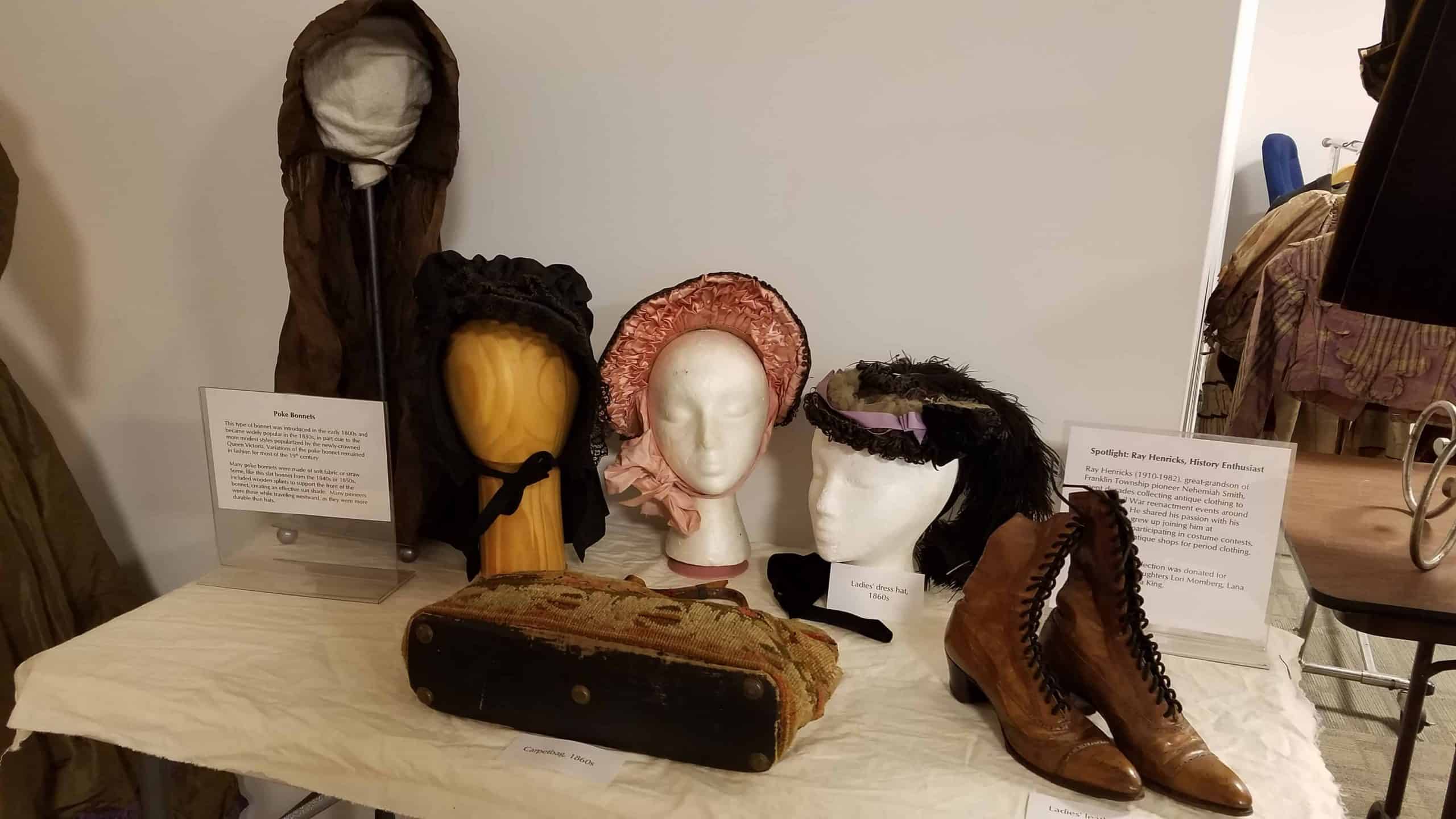 Our Vintage Clothing Show covered 130 years of fashion, with authentic pieces from the 1840s through the 1970s. More than 80 attendees braved the September deluge to experience this special exhibit!