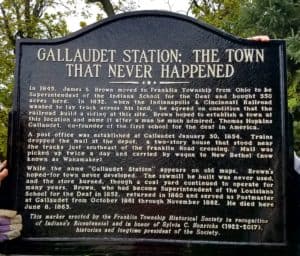 personal school mementos were given to us by Alena Van Arendonk: two spiral notebooks with Franklin Township Middle School printed on the covers, some awards ceremony and theatre programs from FCHS of the 1990s, an FCHS wristwatch awarded for academic honors, and a Wheatley’s Market store closure farewell pen given in 1999. We also received an antique school desk from Laura Baugh, which we put in our “school corner” in the Meeting House. - We designed and erected a new bronze historical marker titled “Gallaudet Station: The Town That Never Happened.” We combined the dedication ceremony with our annual Harvest Luncheon, which was well attended. The luncheon included special guest speaker Doug Stringham of Utah Valley University, and also featured a silent auction with gift baskets donated by area businesses, proceeds from which went toward offsetting the cost of the marker. The historical marker is located at 5605 S. Franklin Road, on the property of Grace Church, near the historic site of the Gallaudet train siding.